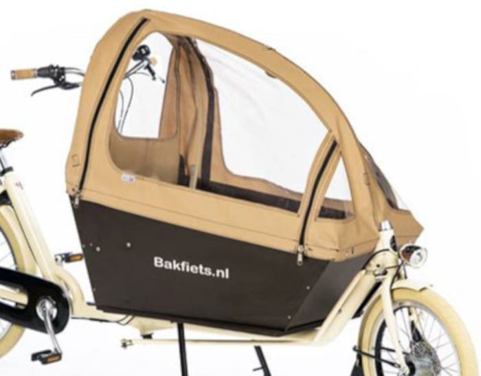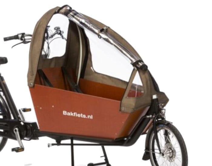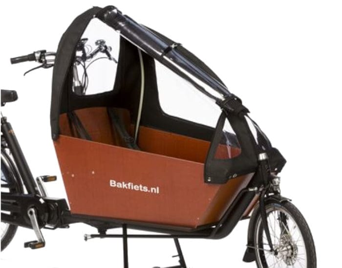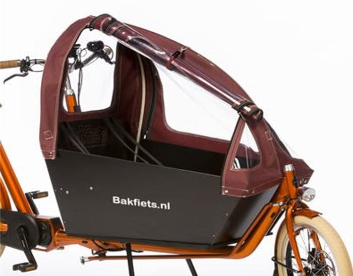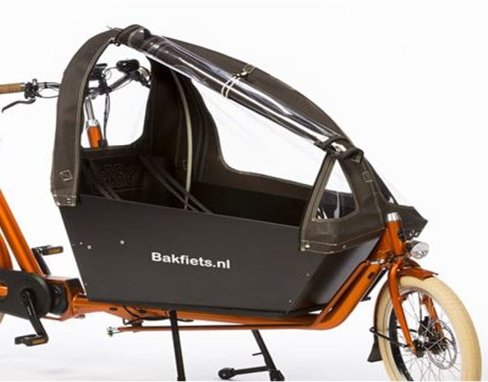 Er zijn twee soorten tenten beschikbaar voor de Bakfiets.nl CargoBike; de Bisonyl 90% open tent (van dik vrachtwagenzeil) in glanszwart of de supersterke Botendoek 90% open tent welke veel gebruikt bij kuiptenten in de Luxe Jachtbouw. Met sterke ritsen aan beide zijden, zodat de huif aan beide zijden bijna helemaal open kan! In de kleuren: Lichtbruin, Rood, Marine Blauw, MatZwart.