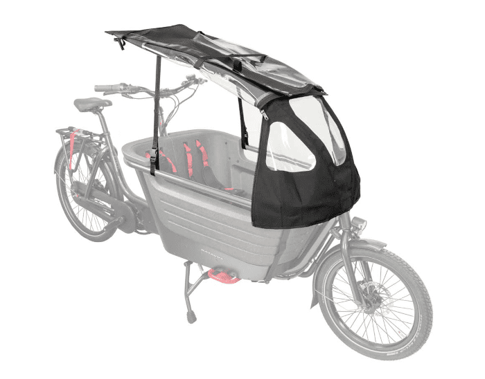 De Batavus Fier 2 tent is de perfecte oplossing voor ouders die hun kinderen het hele jaar door veilig, droog en comfortabel willen vervoeren. Deze hoogwaardige regentent is speciaal ontworpen voor de Winora F.U.B 2 bakfiets en sluit naadloos aan op het bakframe, zodat er geen water of wind kan binnendringen. Dankzij het stevige, waterdichte materiaal en de transparante ramen blijft het zicht rondom uitstekend – zowel voor de bestuurder als voor de passagiers – waardoor veiligheid en comfort altijd gewaarborgd zijn.