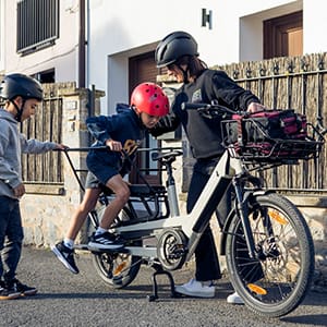 De Longtail fiets is voorzien van een extra lange bagagedrager, wat het een ideale keuze maakt voor het vervoeren van extra lading. Op deze stevige drager kunnen gemakkelijk twee kinderzitjes of speciale kussens worden bevestigd met het handige Mik-HD systeem. Hierdoor kun je eenvoudig wisselen tussen verschillende accessoires, afhankelijk van je behoeften.
