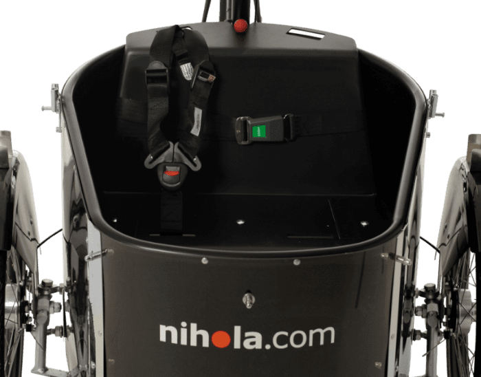 De Nihola Y-gordel (driepunts veiligheidsgordel) zorgt voor maximale veiligheid bij het vervoeren van kinderen in je Nihola bakfiets. Dankzij het driepunts ontwerp worden schouders en heupen goed ondersteund, waardoor kinderen stevig en comfortabel blijven zitten — ook op oneffen wegen.